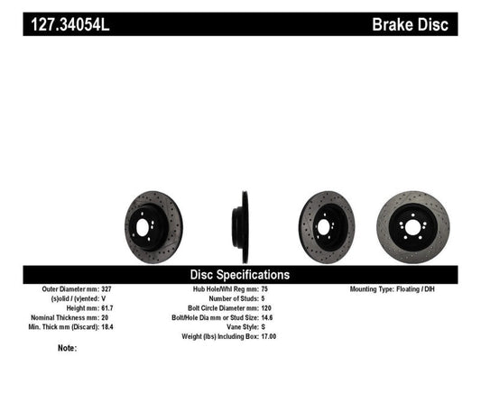 StopTech 00-03 BMW M5 (E39) Slotted & Drilled Left Rear Rotor
